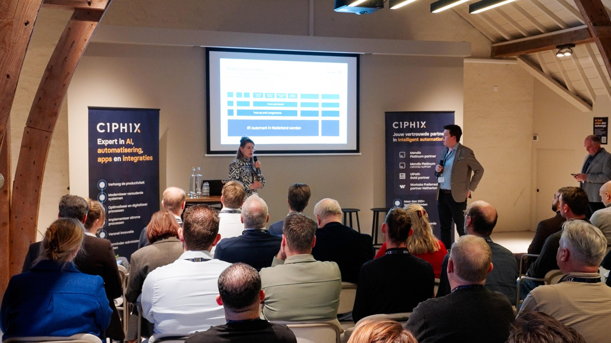 From this central message, a coherent narrative unfolded throughout the afternoon. Technology is evolving faster than ever, but impact only emerges when organisations approach AI as a strategic challenge rather than a collection of disconnected solutions. This red thread ran through all keynotes and customer cases.